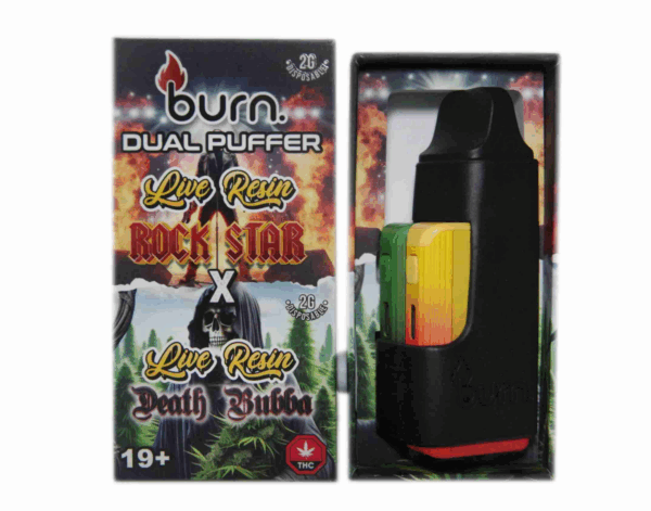The Burn Dual Puffer combines both flavours into one mouthpiece allowing you to experience the combination of both flavours at once. This design provides a unique, intense vaping experience with enhanced vapor production, perfect for those who enjoy a larger, more robust hit in a fun and creative way.