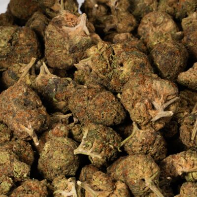 Strawberry is best known for its sweet, berry-forward taste. Smoking it is like biting into fresh strawberries drizzled with cream and sugar, followed by an earthy undertone that lingers on the palate. Its aroma is just as enticing, with a mix of ripe strawberries, subtle spice, and a touch of earthiness. The buds themselves are dense and popcorn-shaped, showcasing a dark olive green color. Light amber hairs weave through the flowers, while a thick coating of sticky resin makes the nugs sparkle, signaling their potency and quality.